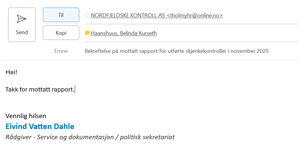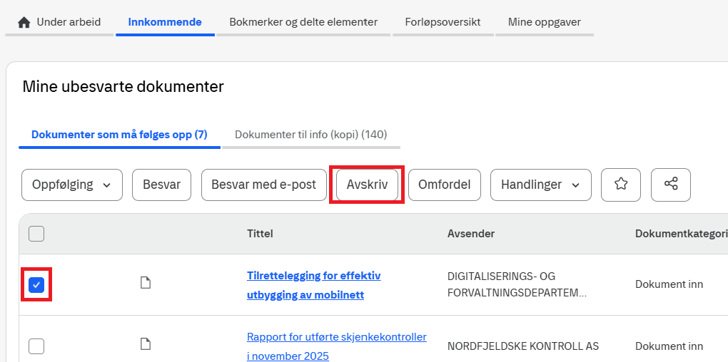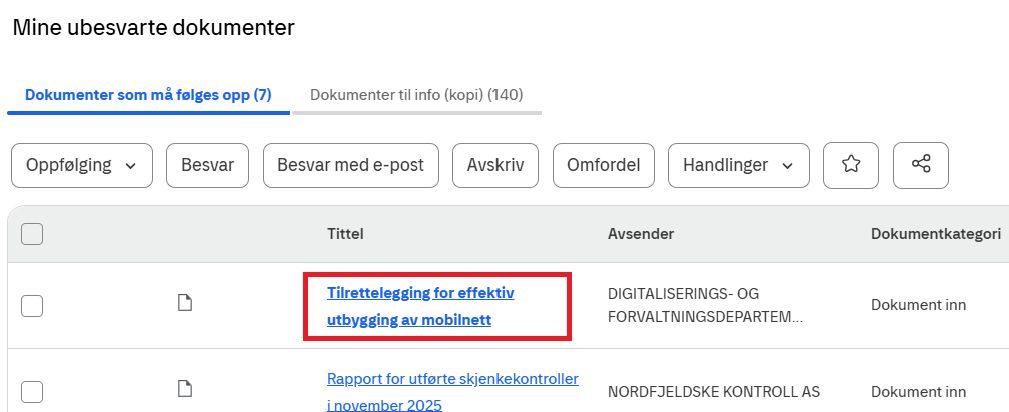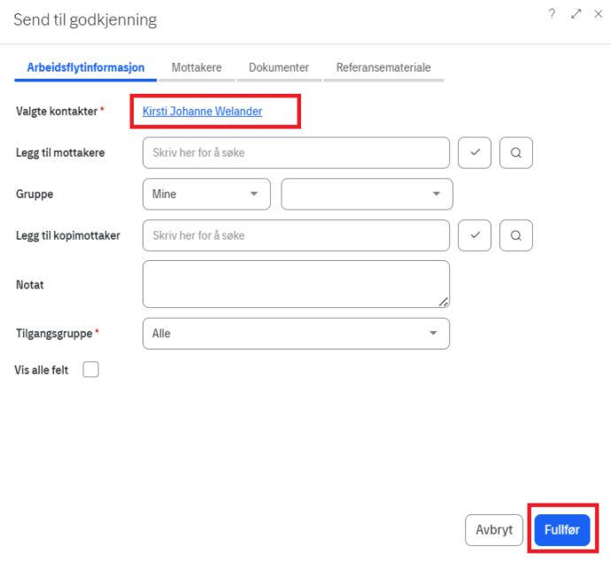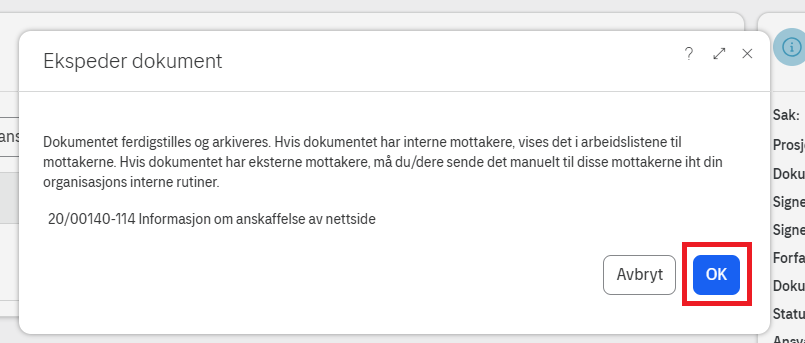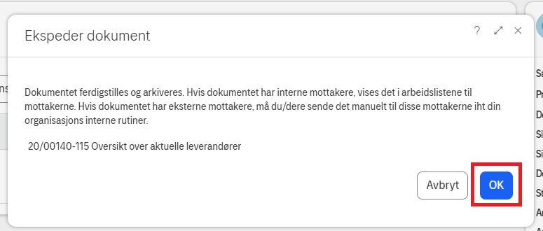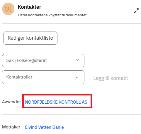 Når du klikker på den blå Ekspeder-knappen, sendes dokumentet til mottaker: