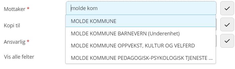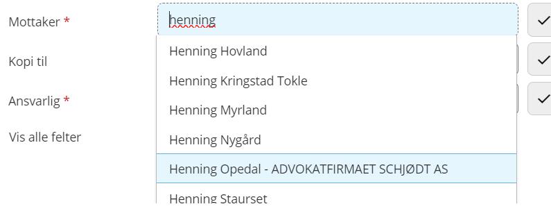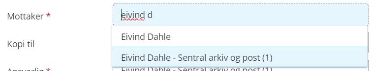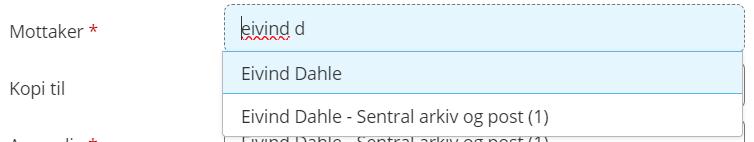 Et utgående dokument kan ha flere mottakere og kopimottakere, det er bare å legge dem til i riktig felt.