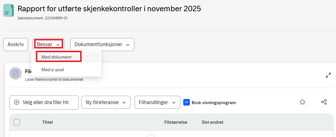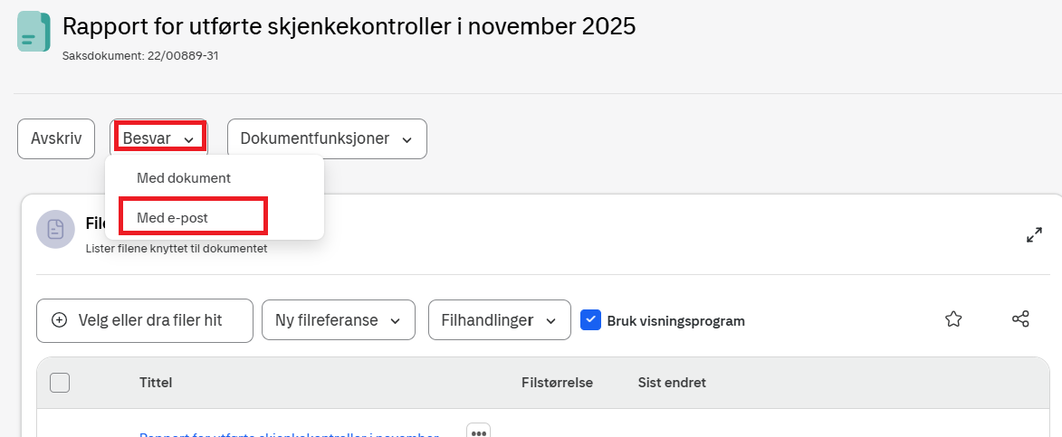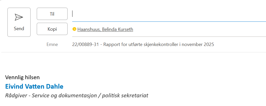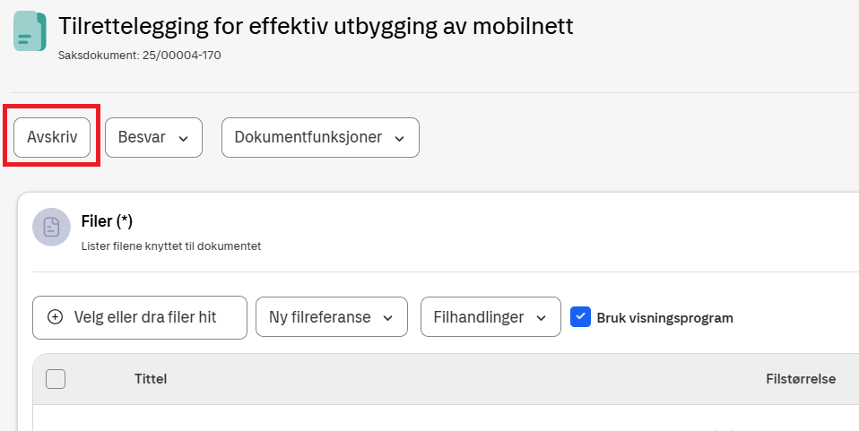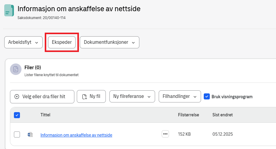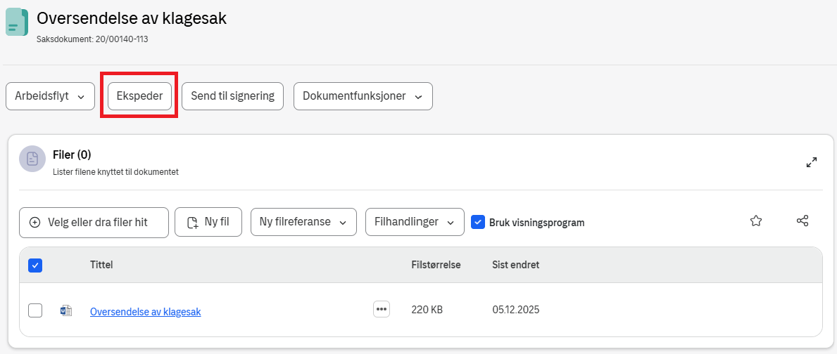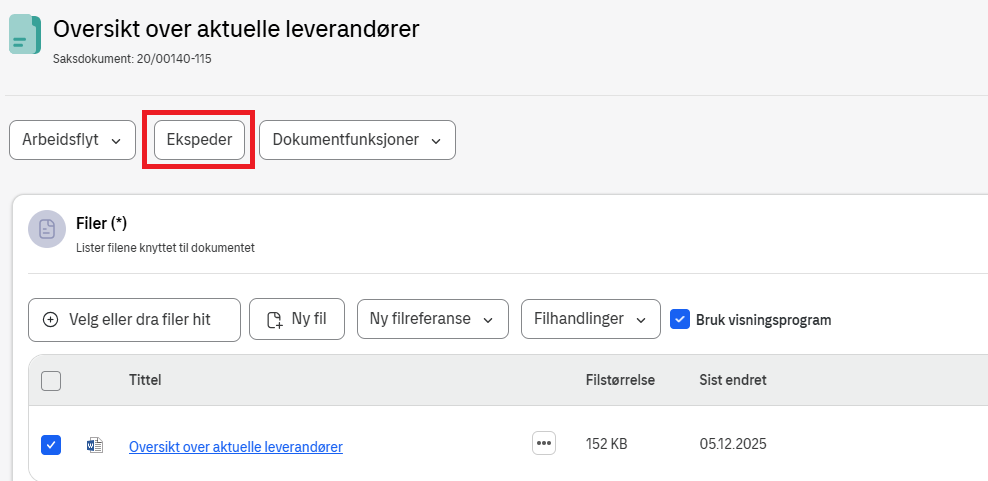 Når innholdet i dokumentet er ferdigskrevet, kan brevet ekspederes (som kort sagt betyr å sende det til mottaker). Klikk på knappen Ekspeder: