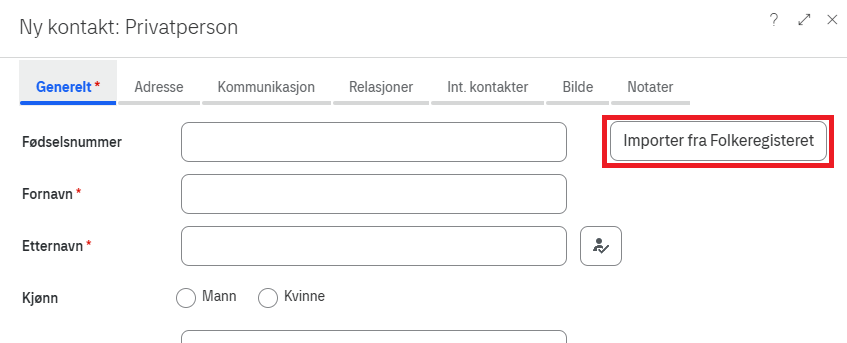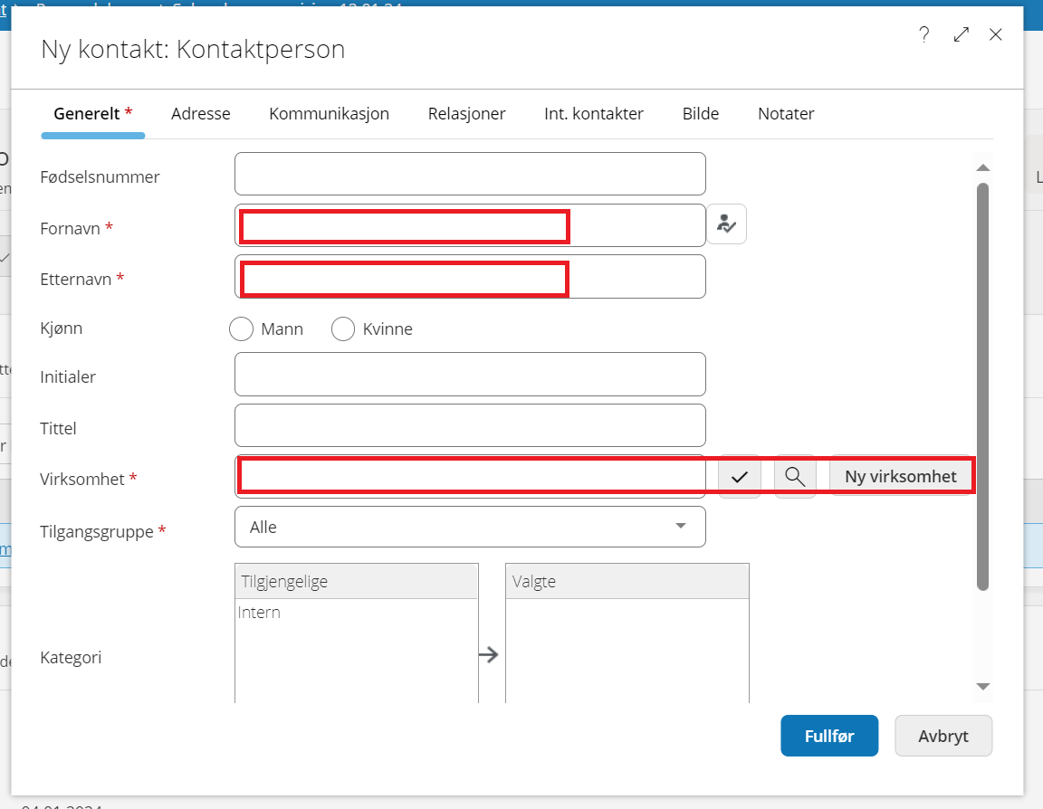 I neste bilde er det obligatorisk å fylle ut feltene som har en rød stjerne.