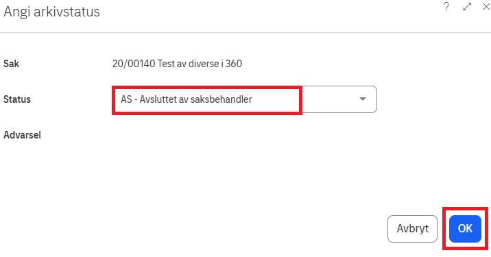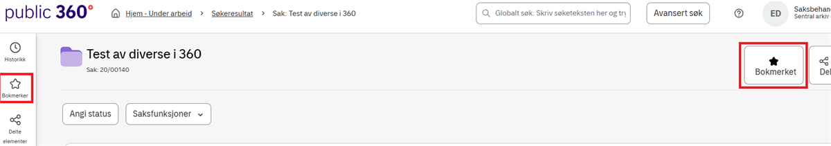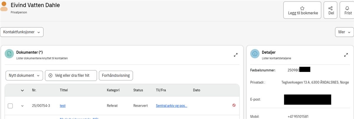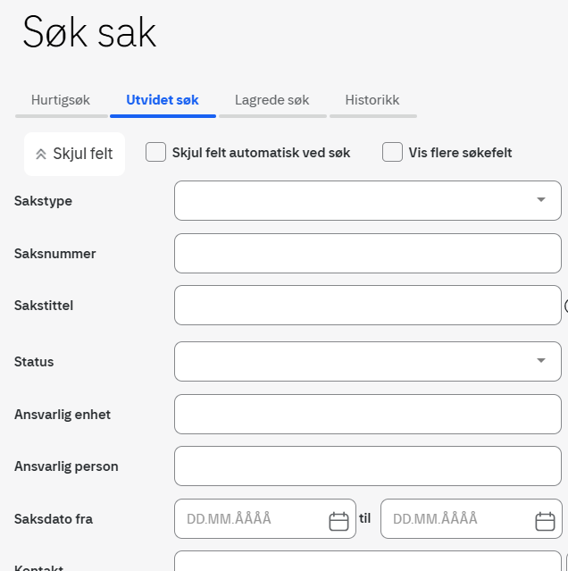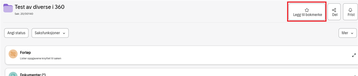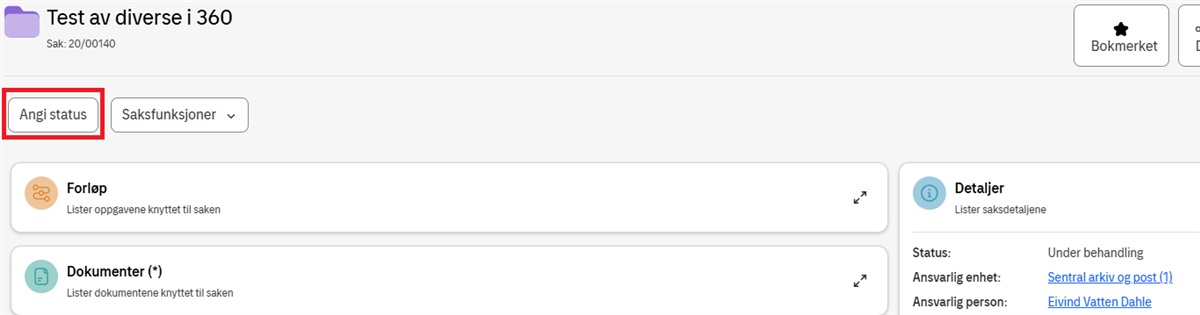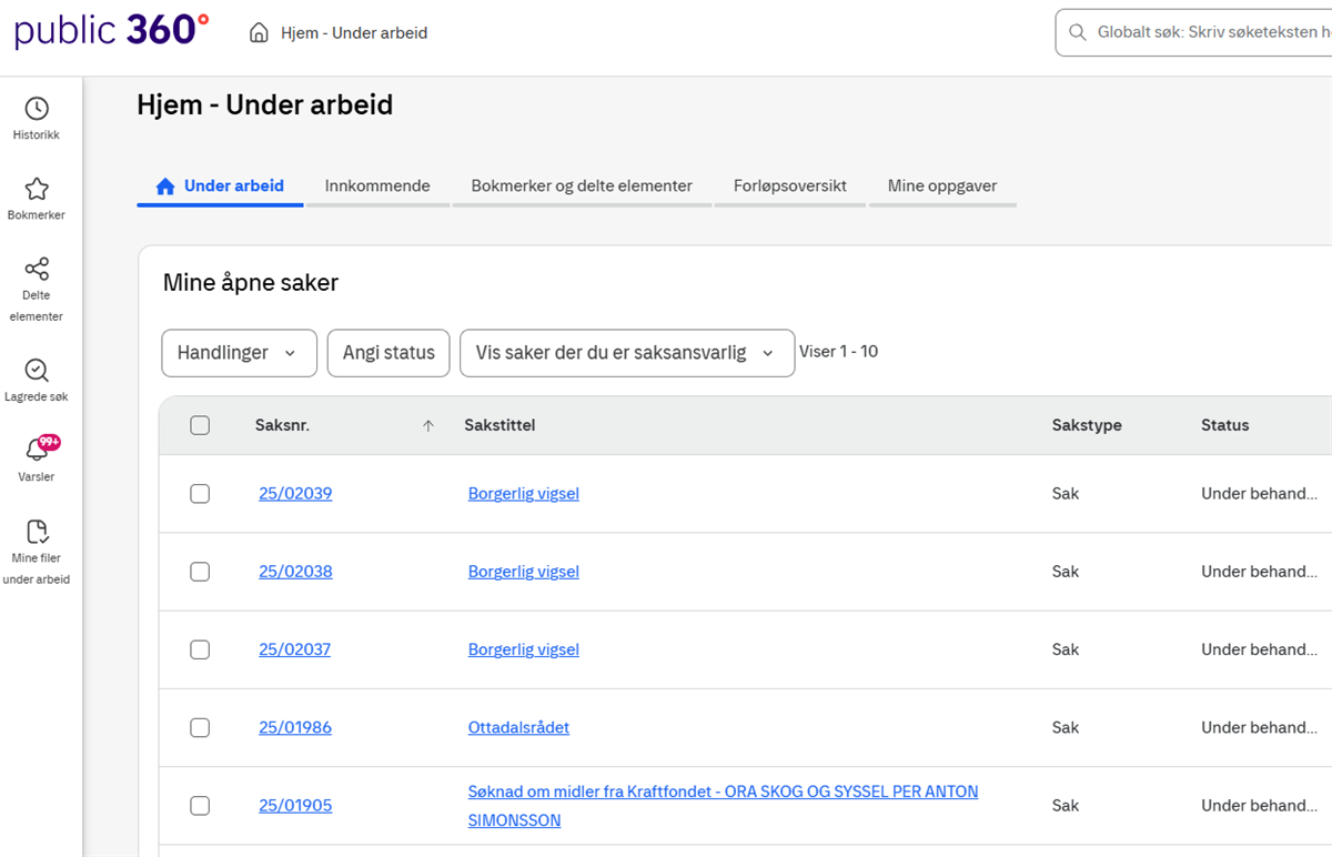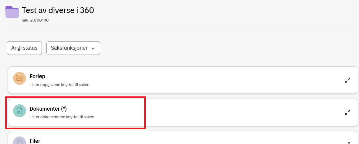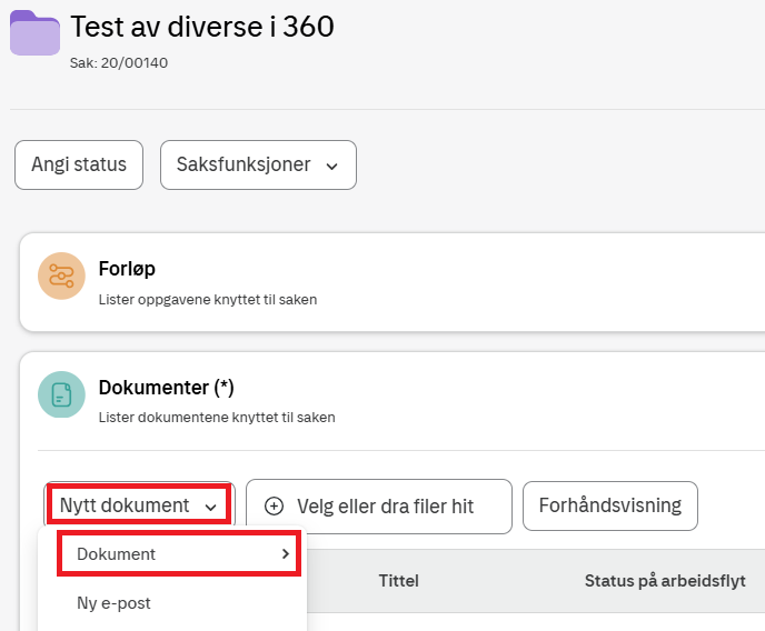 Når saken er opprettet, kan du opprette saksdokumenter på vanlig måte.